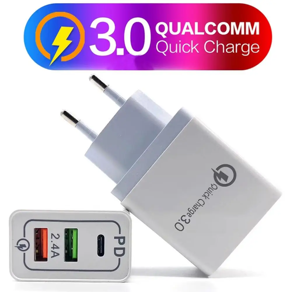 المنتجات ذات الصلة ل Mobile Phone Chargers و 3 منافذ شاحن جداري USB PD QC3.0 سريع شحن 2.4A نوع C USB3.1 سريع تهمة لنا الاتحاد الأوروبي التوصيل PD شاحن ل الهواتف المحمولة و أقراص