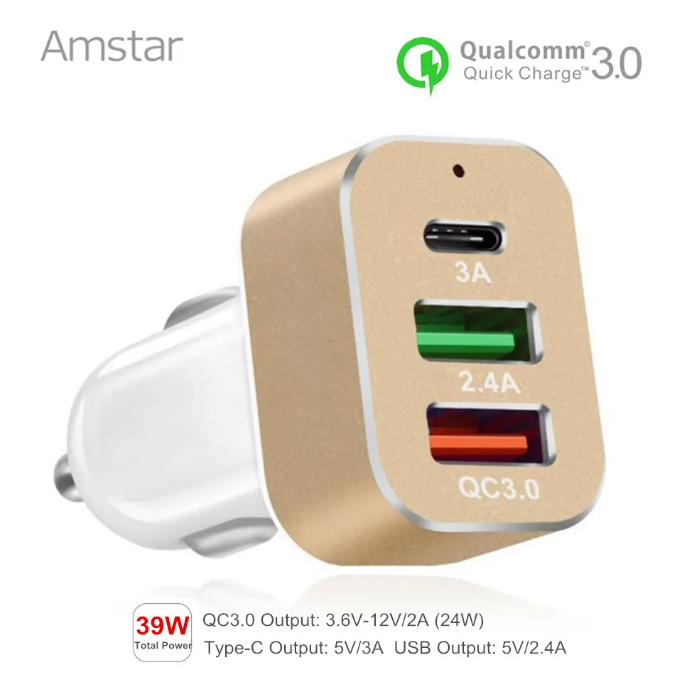 المنتجات ذات الصلة ل Mobile Phone Chargers و Amstar USB-C شاحن سيارة نوع-c & السريع 3.0 usb شاحن الكربون؛ 39 واط QC3.0 s8 سيارة شاحن الهاتف المحمول ل sumsang xiaomi Mi5