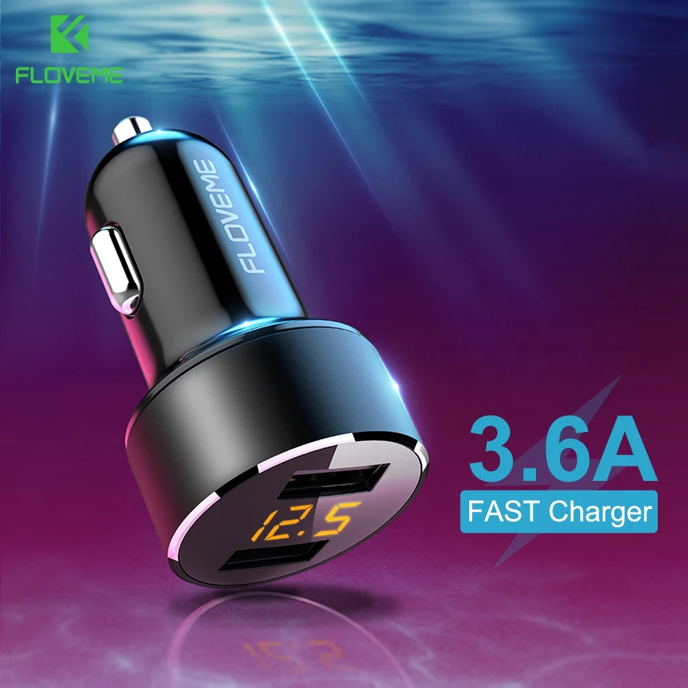 شراءمعلومات اضافية FLOVEME 18 W USB سيارة شاحن آيفون Xiaomi 3.6A سريع كابل شحن لهواتف سامسونج الهاتف المحمول المزدوج ميناء LED شاشة ديجيتال شاحن