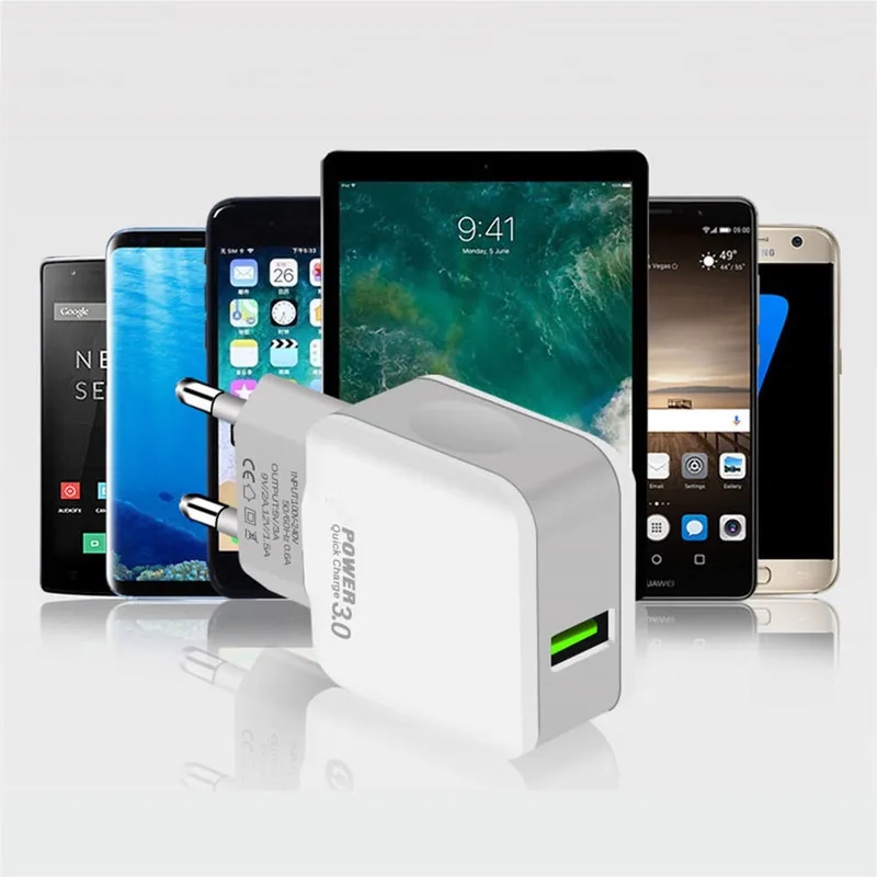 المنتجات ذات الصلة ل Mobile Phone Chargers و سريعة تهمة QC 3.0 USB سريع شاحن السفر الحائط الطاقة محول الاتحاد الأوروبي التوصيل ل سامسونج S9 شياو mi mi 8 هواوي الهاتف المحمول شاحن