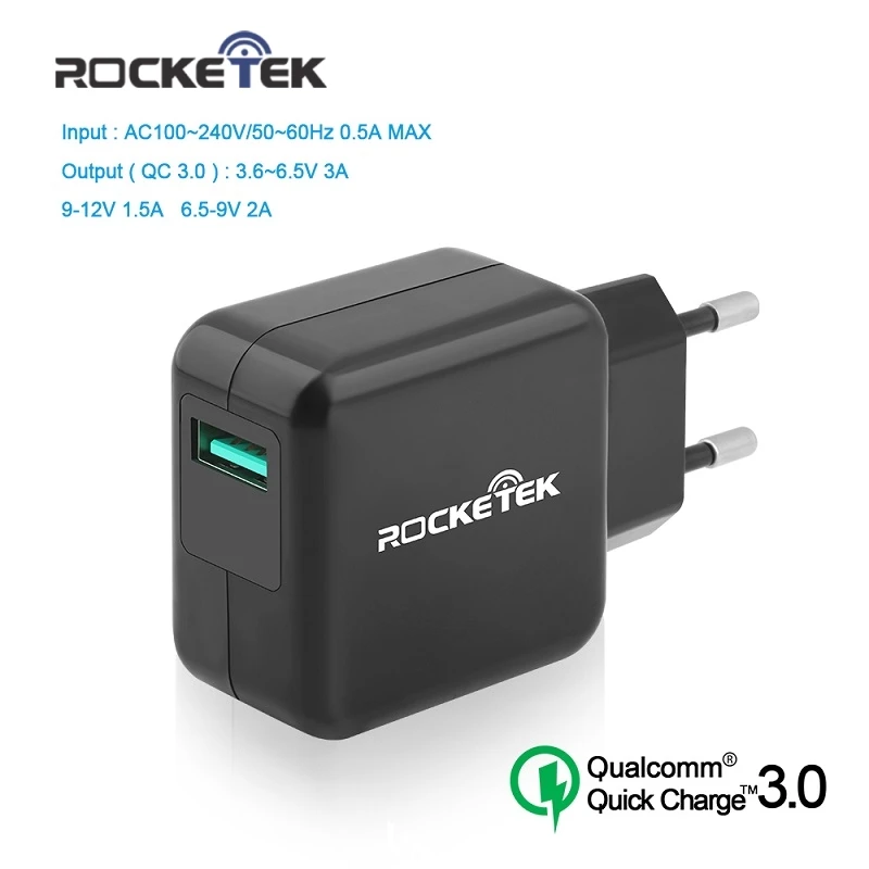 البحث عن معلوماتمعلومات اضافية Rocketek شاحن USB للهاتف سريعة تهمة QC 3.0 السفر الهاتف المحمول سريع شاحن يو اس بي 2.0 متوافق ل سامسونج Xiaomi 5 هواوي