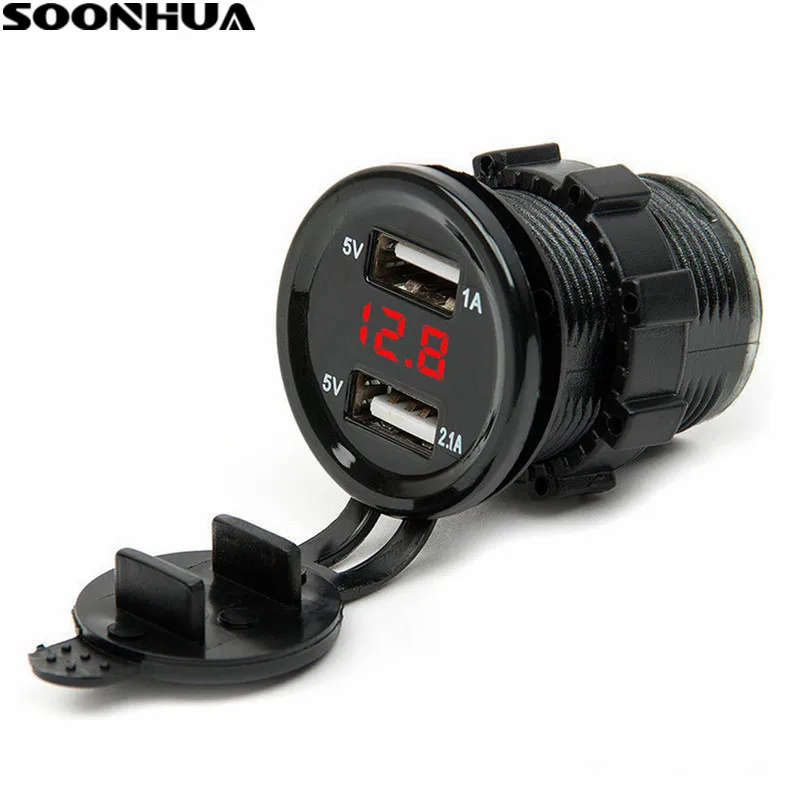 معرض ل SOONHUA المزدوج USB ميناء سيارة شاحن ولاعة السجائر مقبس التوصيل LED الفولتميتر للماء المحمول الهاتف الذكية شحن محول