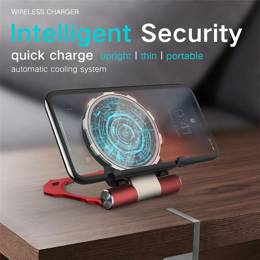 المنتجات ذات الصلة ل Mobile Phone Chargers و الرجل الحديدي معدنية تشى حامل شاحن لاسلكي هاتف سطح المكتب المتنقل شاحن آيفون X سامسونج S9 S8 10 واط لوحة شحن سريع