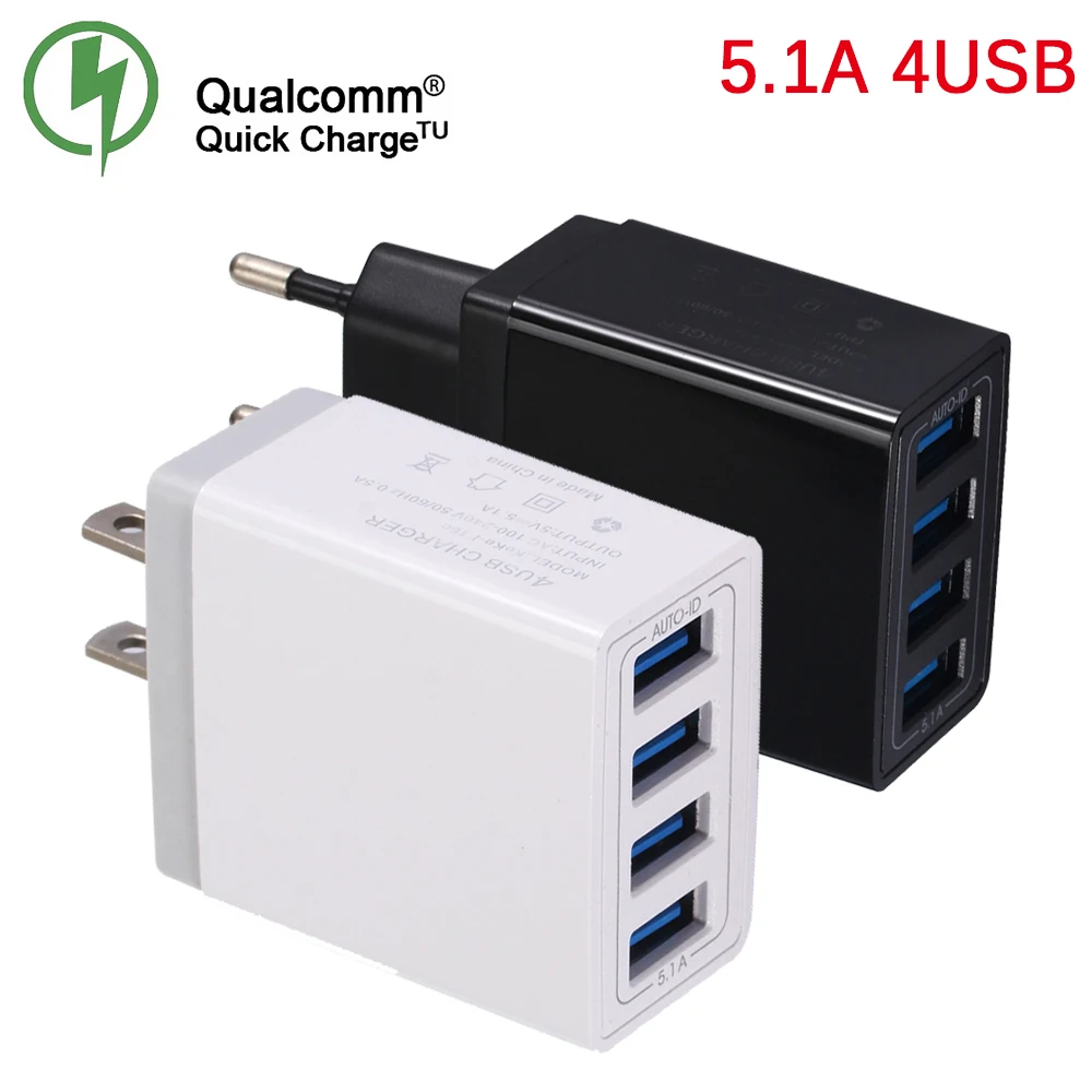 استعارات من العالمي 4USB السفر مهايئ شاحن الهاتف المحمول ل فون سامسونج 5 V 5.1A الذكية شحن رئيس هاتف ذكي USB شاحن سريع